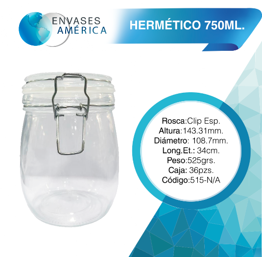 Hermético750ml. - FRASCOS DE VIDRIO