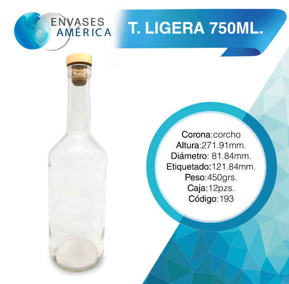 TequileraLigera750ml - FRASCOS DE VIDRIO